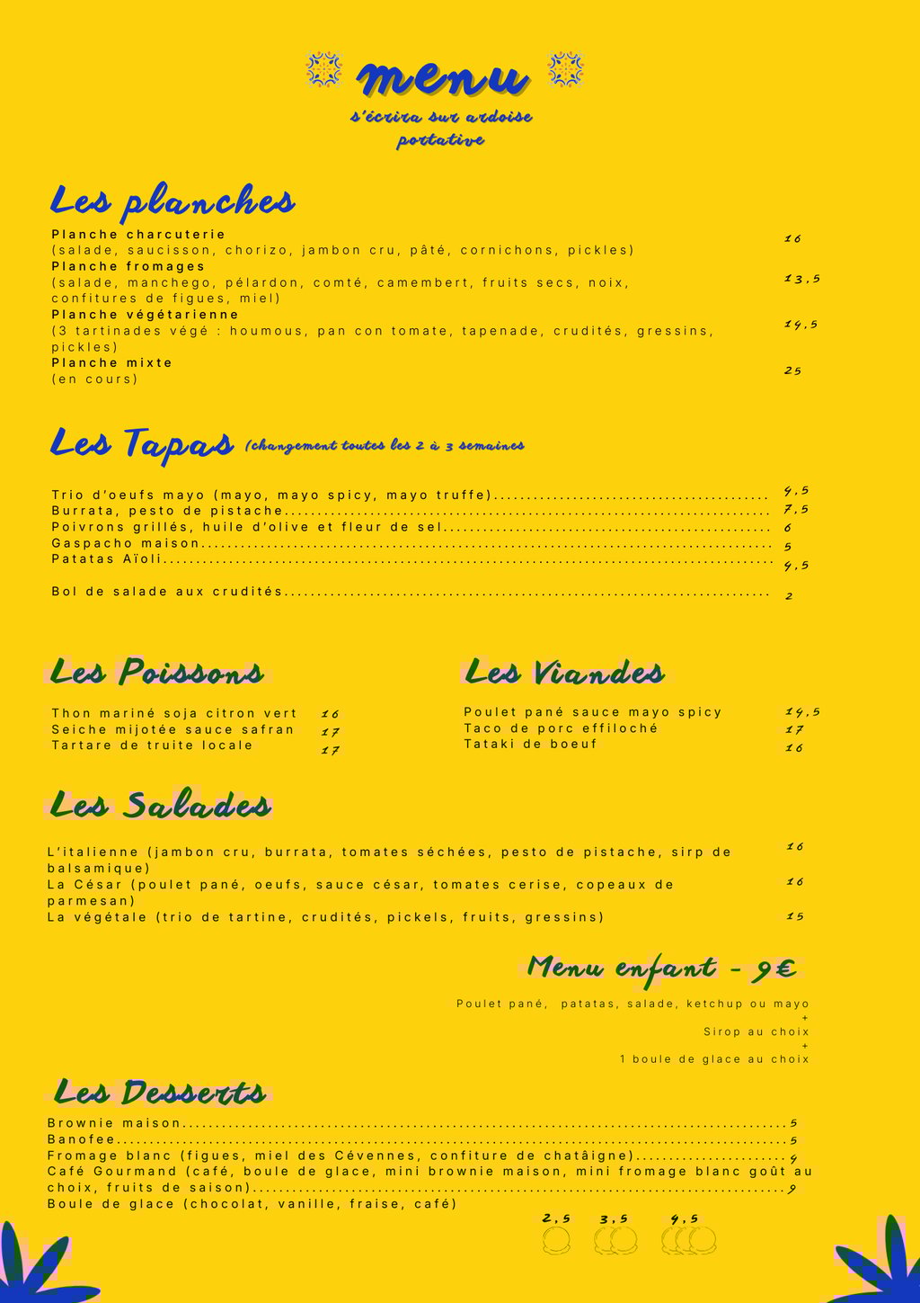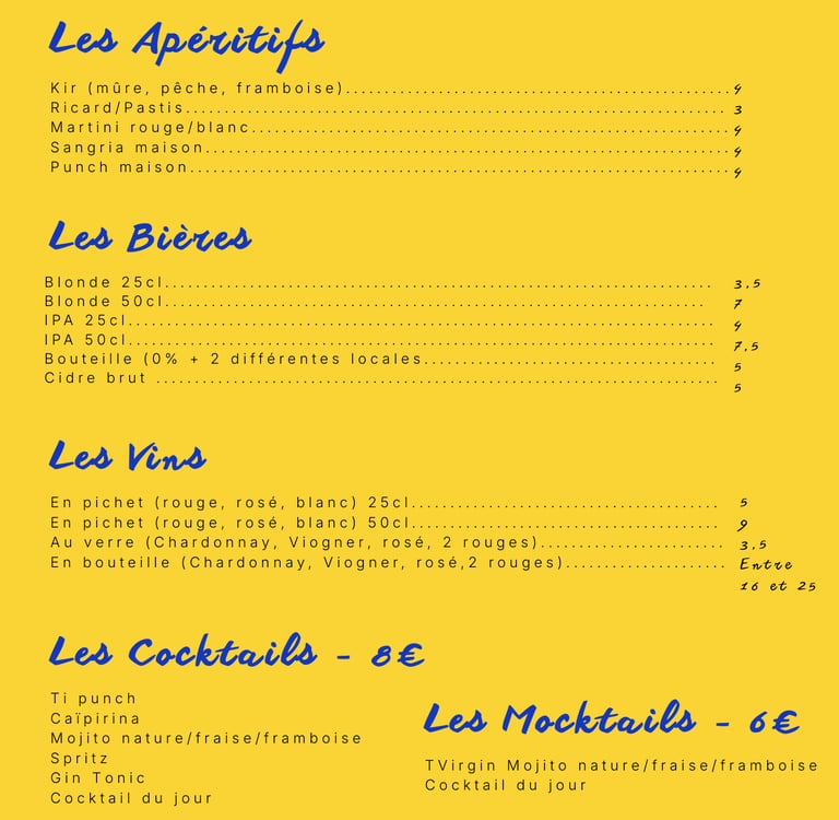 Tapas savoureuses, plats simples et desserts faits maison, servis dans une atmosphère conviviale et colorée.